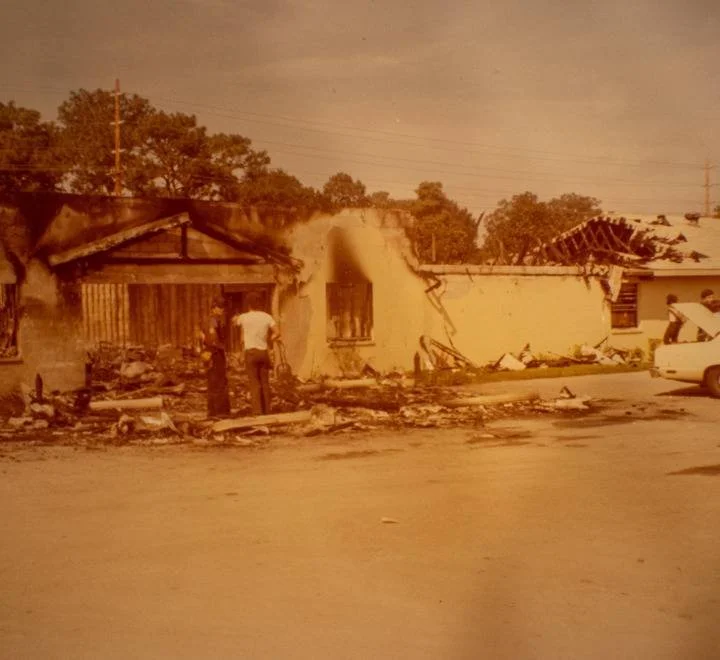 The original building burned after being vandalized on October 29th, 1981. A new, larger building with more classrooms and offices was erected on the same site. This expanded facility could comfortably handle more than 350 people in worship.